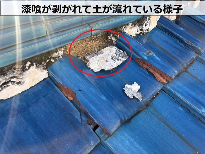 剥がれた漆喰は瓦の隙間から雨水が入り込むリスクを高めるため、
